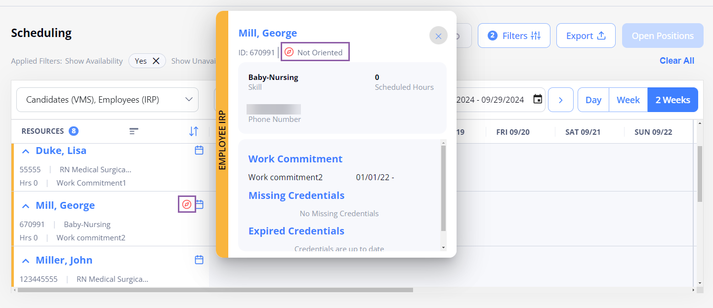 An Employee must be oriented in an assigned department before one can apply, shortlist, and onboard this Employee to orders and schedule LTA/Per Diem bookings (for details, go to Orientation in Order Management and Scheduling.)